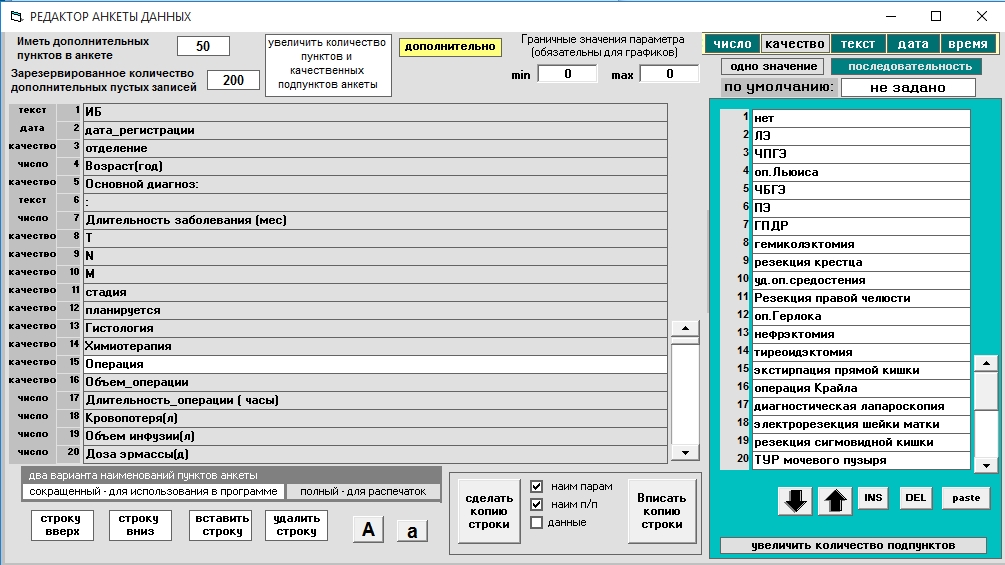 Установить анкету (спмсок названий параметров) или таблицу данных в систему
