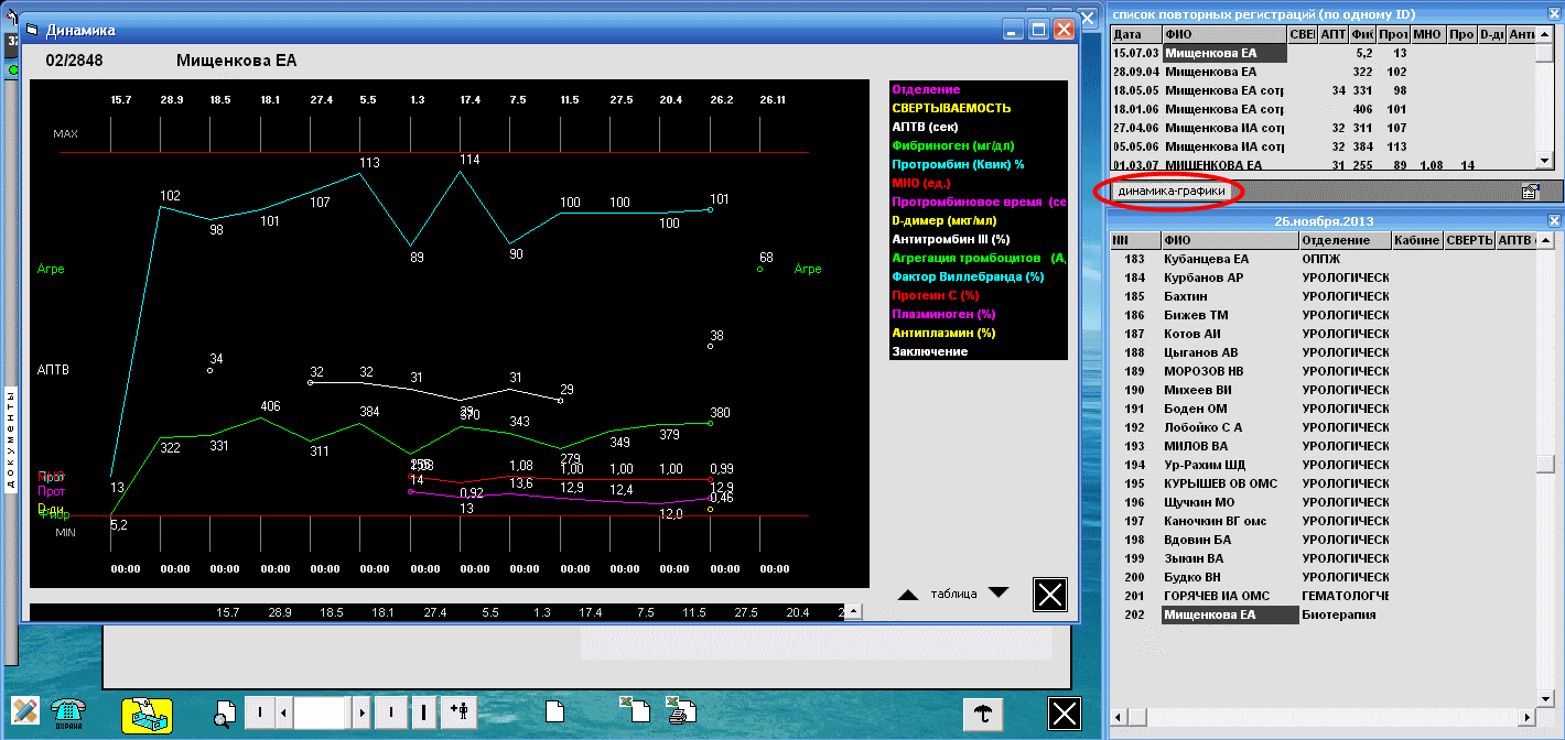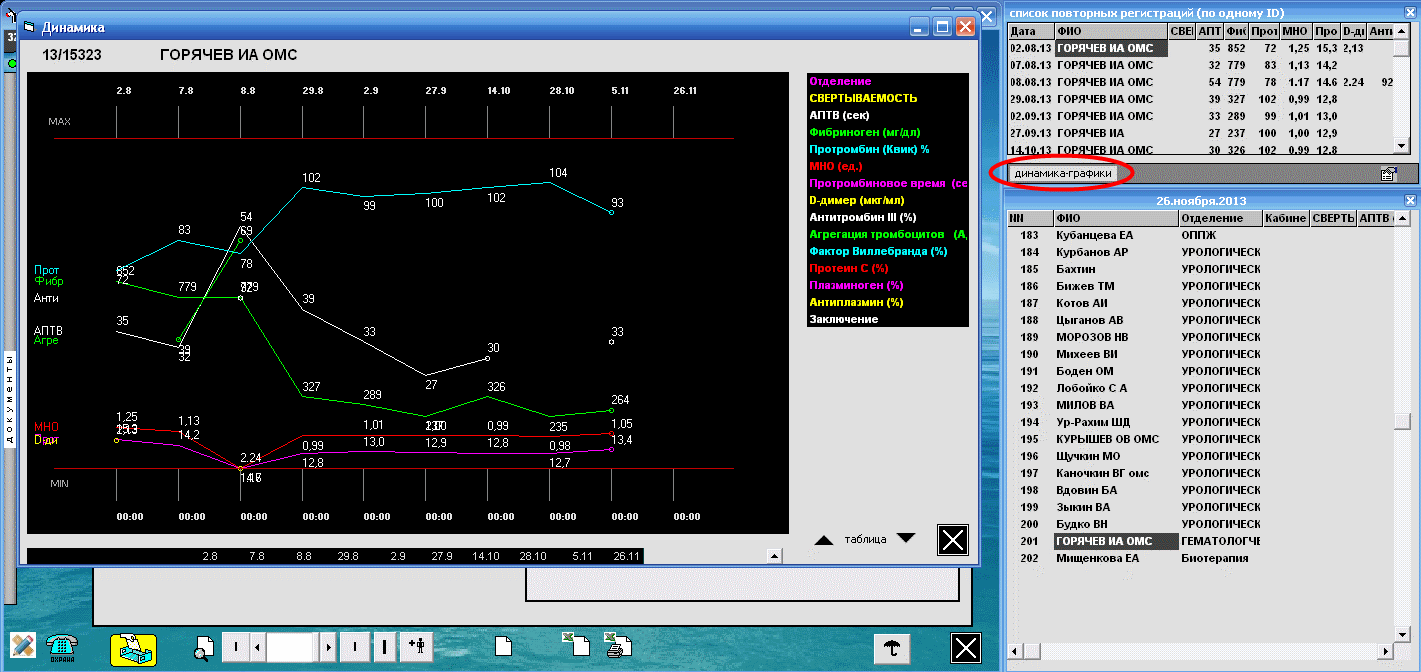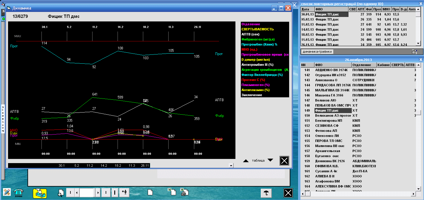 Эти графики получены по базе данных лаборатории гемостаза