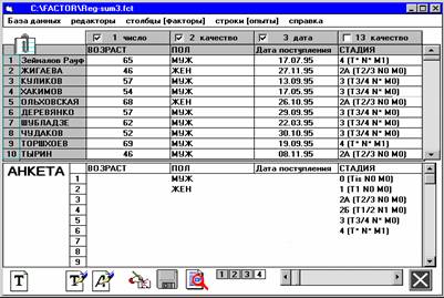 анкеты. Качественные параметры заполняются в таблицу по щелчку кнопки мыши