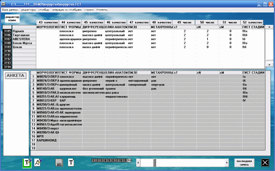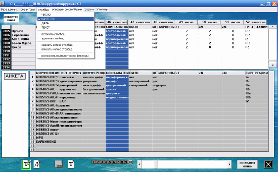 анкеты. При задании типа столбца как качественный, набранное в ячейке
