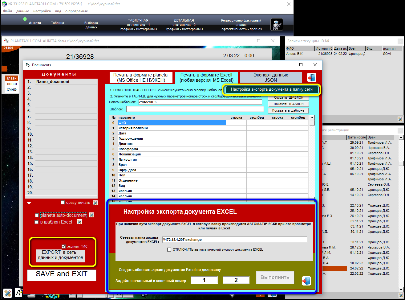 | Настройки - экспорт данных формата JSON и документов |