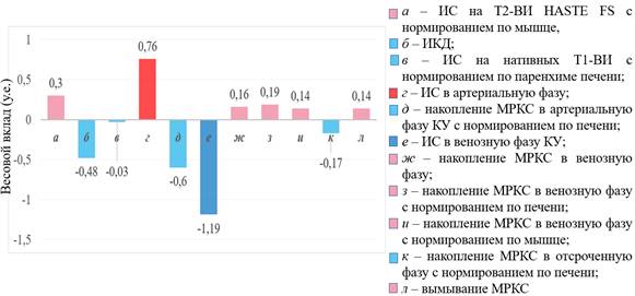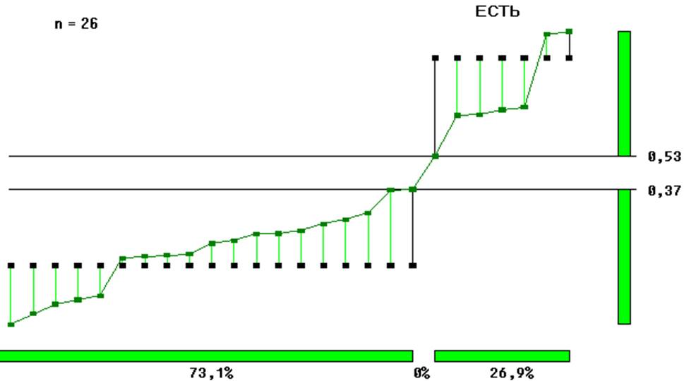 Результат получается в виде ГИСТОГРАММЫ построенной по весовым вкладам параметров