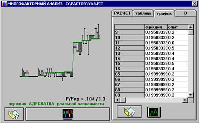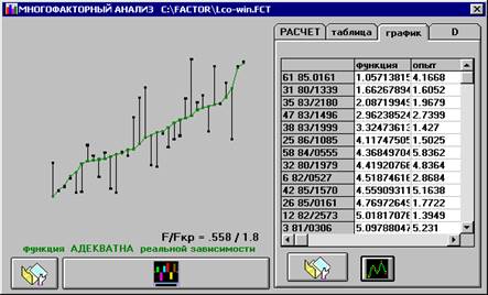 Точность полученной регрессионно-факторной весовой функции реальной зависимости определяется по F- критерию Фишера, который довольно прост для понимания. В найденную регрессионно-факторную функцию подставляются опытные значения параметров по которым она была рассчитана и сравниваются дисперсии отклонения рассчитанного по функции и опытного значения параметра, принятого за критерий, в виде соотношения F/Fкр