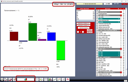 В системе ФАКТОР разработан новый математический механизм РЕГРЕССИОННО-ФАКТОРНОГО АНАЛИЗА, который позволяет анализировать всю имеющуюся информацию в единой математической схеме без ограничений на состав данных. Этот механизм позволяет работать с любыми процессами в любых вариантах исследований.
