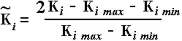 Один из основных путей получения ортогонального плана является построение полного факторного эксперимента. Главный принцип построения полного факторного эксперимента состоит в том, что каждый фактор варьируется на двух уровнях, т.е. может принимать всего два значения К(i)max и К(i)min при этом количество экспериментальных точек выбирается таким образом чтобы были просмотрены все возможные сочетания уровней факторов. В такой схеме числовые параметры кодируются как факторы через преобразование вида: