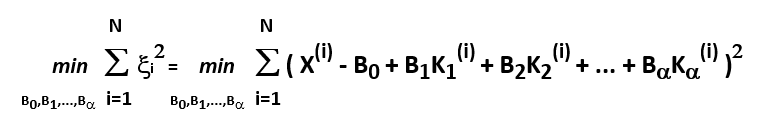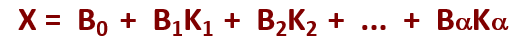 B0, B1, B2, ... ,Ba - весовые коэффициенты регрессии