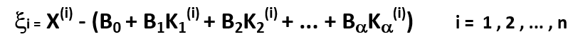 xi - НЕВЯЗКА - разница между экспериментальным и опытным значениями X (критерия).