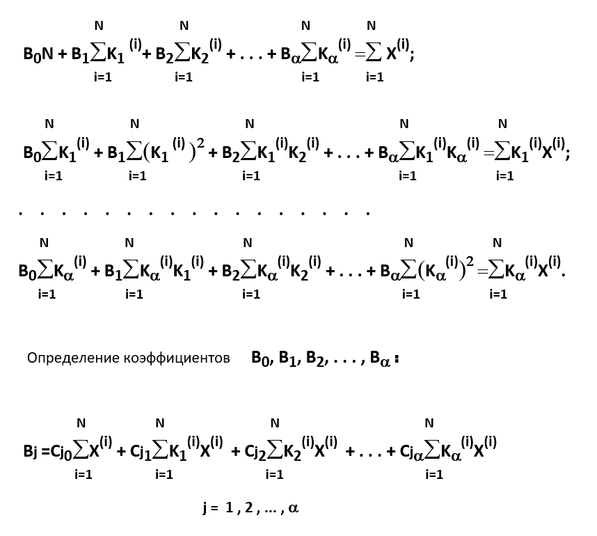 После дифференцирования получаем систему нормальных уравнений относительно неизвестных B0, B1, B2, ... , Ba :