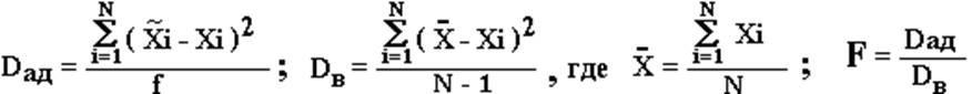 Отклонение реальной зависимости от полученной функции используется остаточная дисперсия (дисперсия адекватности):
