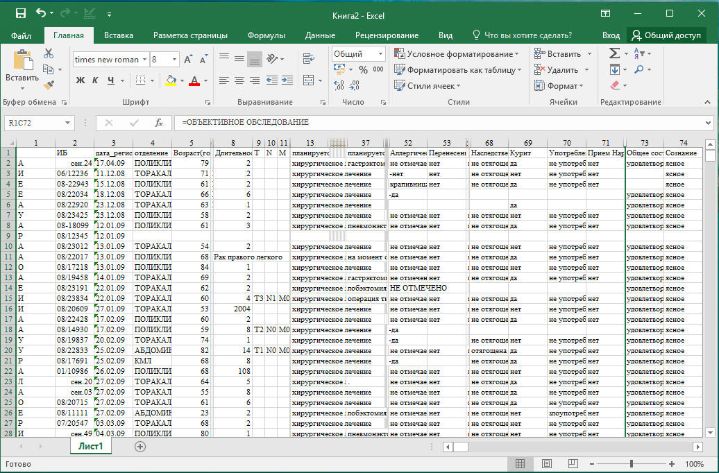 в форме таблицы и в