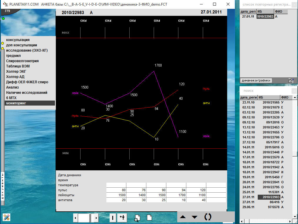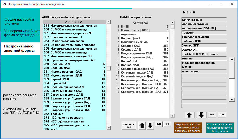 4. Как задать пункты меню для ведения динамики.