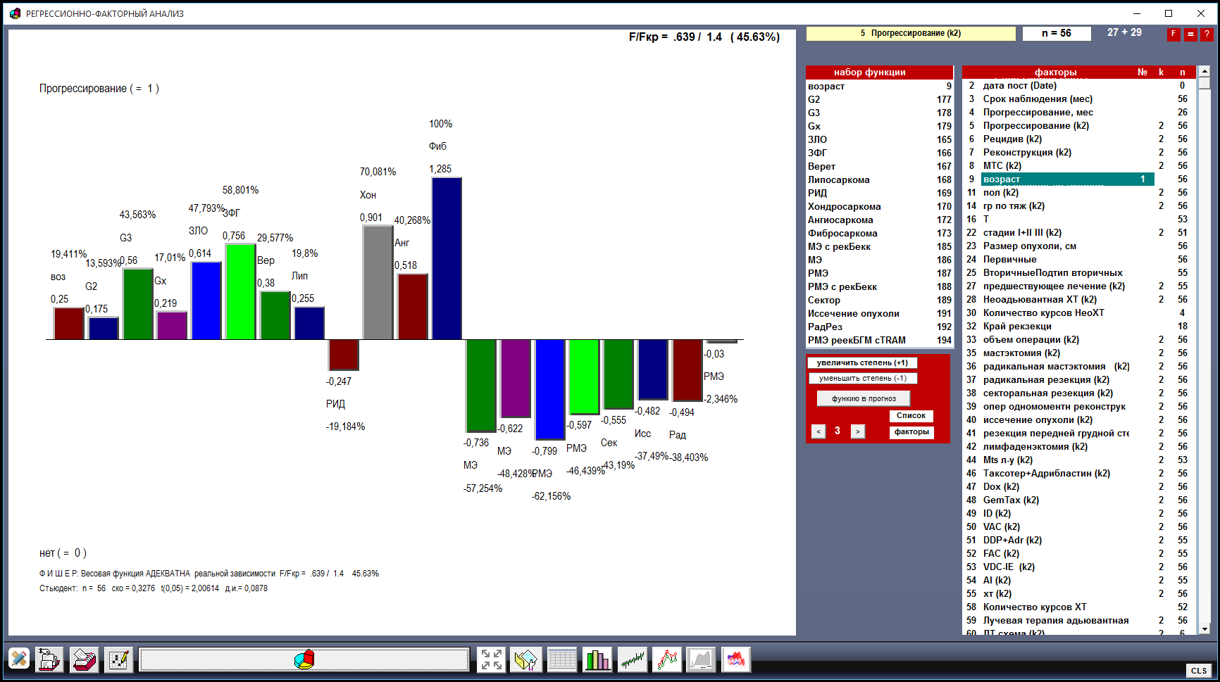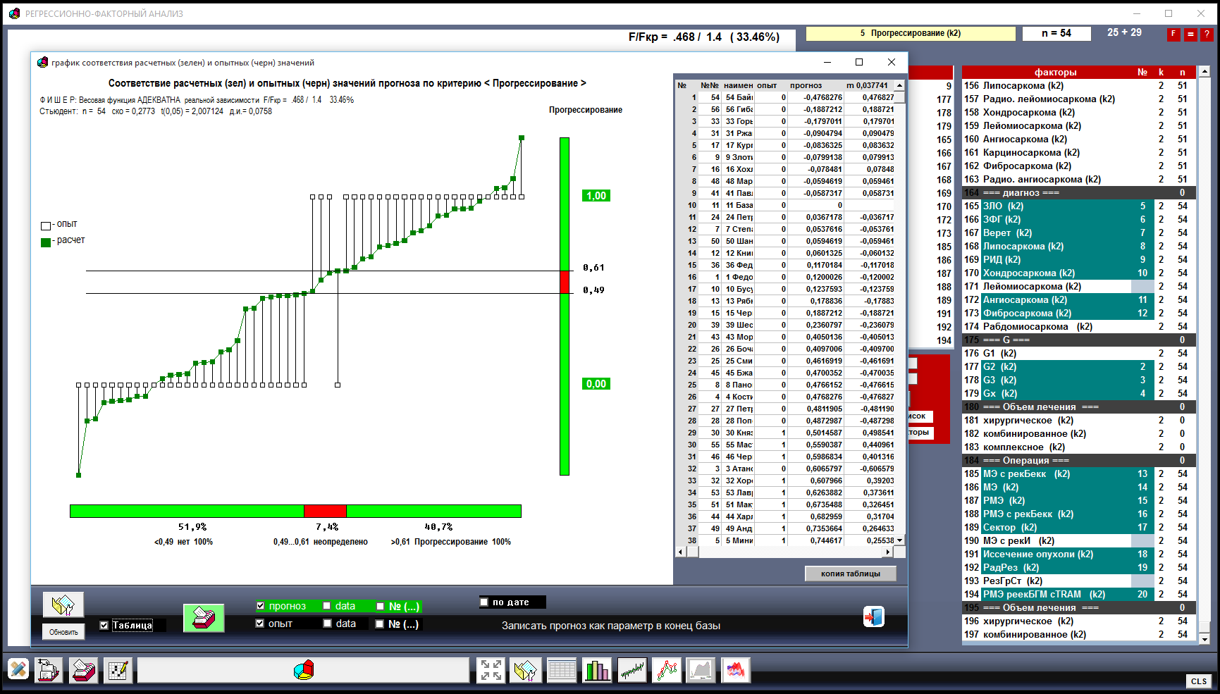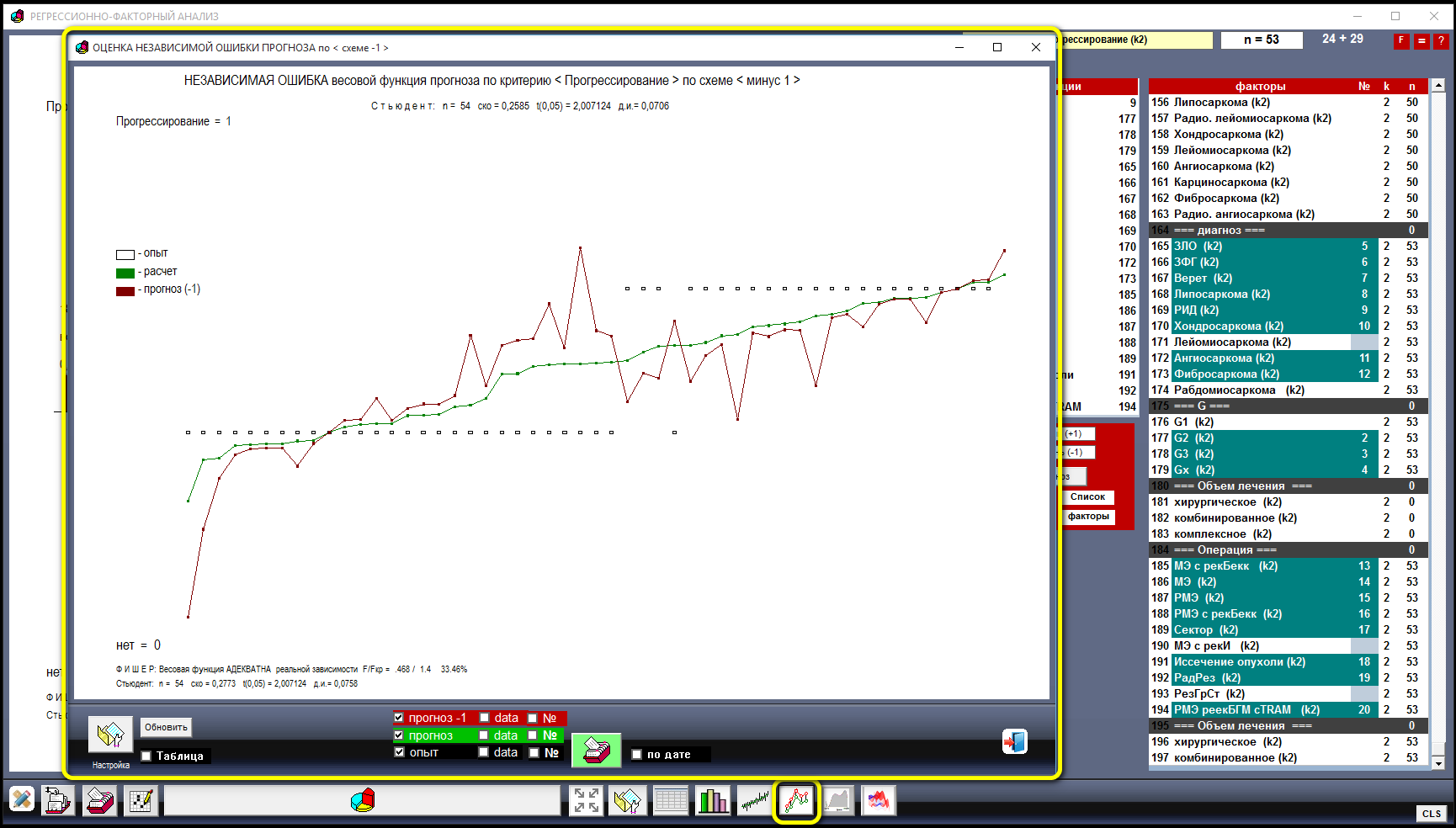 | Функция регрессионно-факторного анализа (RFA) | Соответствие расчетных и опытных значений | Соответствие прогнозируемых значений по "схеме -1" | функцию RFA параметров гемостаза в прогноз анкеты | Авто-прогноз параметров гемостаза в анкете |